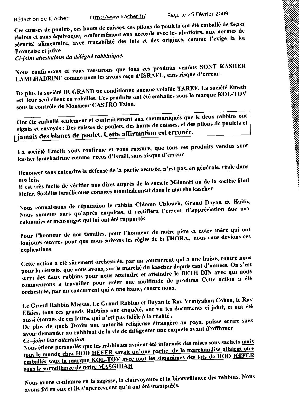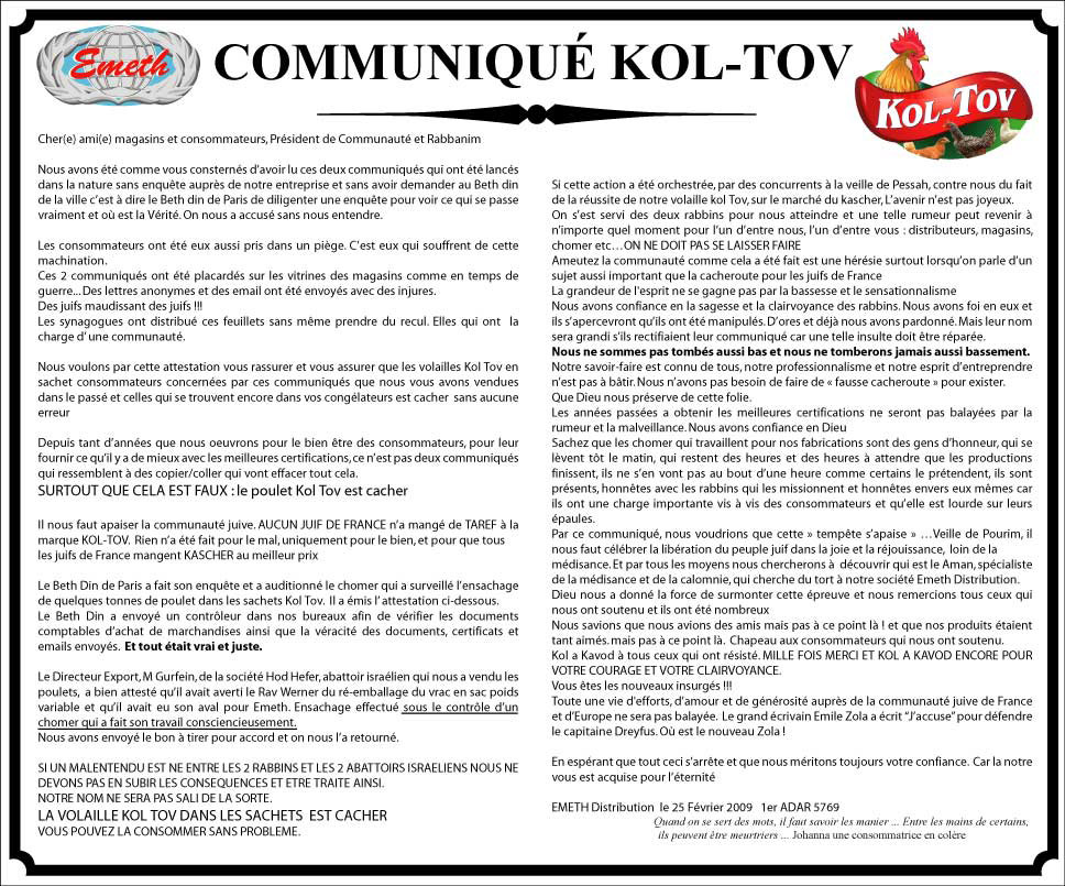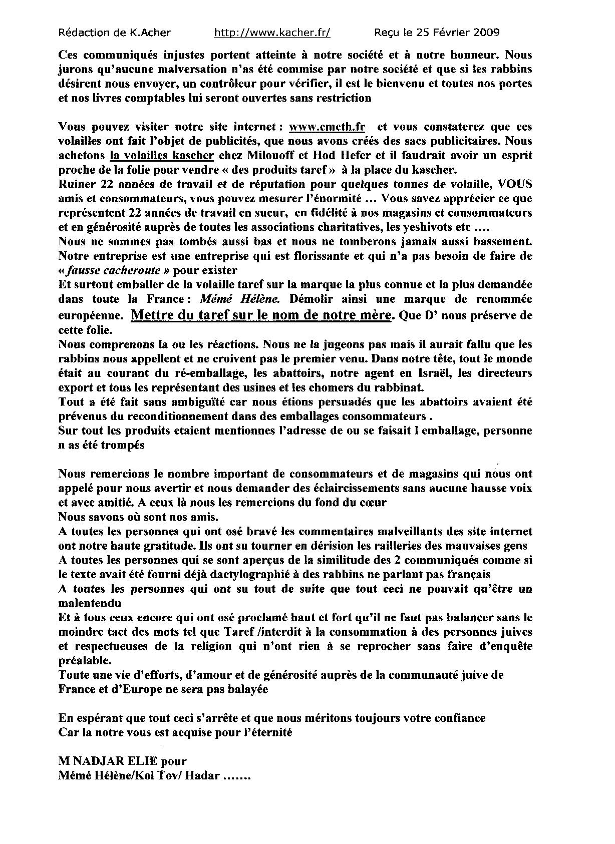Enfin un communiqué est rendu public le 25 février 2009