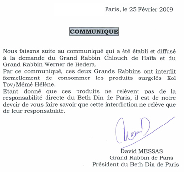 Avec retard, nous prenons connaissance d'un communiqué du Consistoire de Paris: COMMUNIQUE