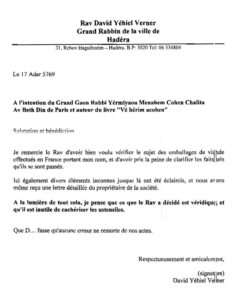 obtenir le précieux certificat de cachrout … La chaîne