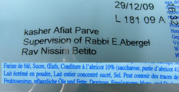 a bien bossé cette année. 2008 –ou plutôt 5768- avait commencé sur les chapeaux de roue, avec la découverte d'une vente de foie gras congelé avant cachérisation et dont nul ne pouvait deviner qu'il fallait le griller avant consommation. Alerté, le Dayan Kohen de Paris avait émis un communiqué au public, et nous avons pu constater en décembre 2008 que l'aventure n'avait pas recommencé. - Un flop sur le dextrose de tapioca nous a permis de découvrir ce produit Cacher le Pessa'h même pour ceux qui ne consomment pas de kitnyot. - Nous avons ensuite communiqué sur une production récurrente de brocolis prétendument surveillés par le Rabbinat de Bruxelles, et le Rabbinat est intervenu pour en faire cesser la distribution, puis traité de produits contenant des "traces de lait" n'existant nulle part ailleurs que …sur l'étiquette. - Petite revue enfin sur les soucis à répétition causés par les contempteurs de l'abattage rituel, telle la Fondation BB, par des distributeurs qui nous font avaler des produits surveillés par un Rabbin "maison" et inconnu, parfois même avec des étiquettes aux caractères micrométriques, l'ironie étant encore la meilleure arme en notre possession. Et lorsque ces distributeurs sont parfois eux mêmes des "Rabbins nouveaux venus d'ailleurs", rien ne va plus. - Récurrent encore, le problème des distributeurs qui alimentent certaines grandes surfaces avec des produits non Cacher le Pessa'h à la veille de Pessa'h, et n'hésitent pas à coller des étiquettes de leur cru pour tromper le public. - Sans oublier ces petits produits au lait dont la mention "lait" est cachée sous un repli de l'emballage, et en toutes langues sauf en français. Nous aurions souhaité faire l'impasse sur des alertes de cacherouth qui nous semblent fortement extrudées, mais le Rav Alloun nous a demandé d'en resservir un couche. Dont acte. |