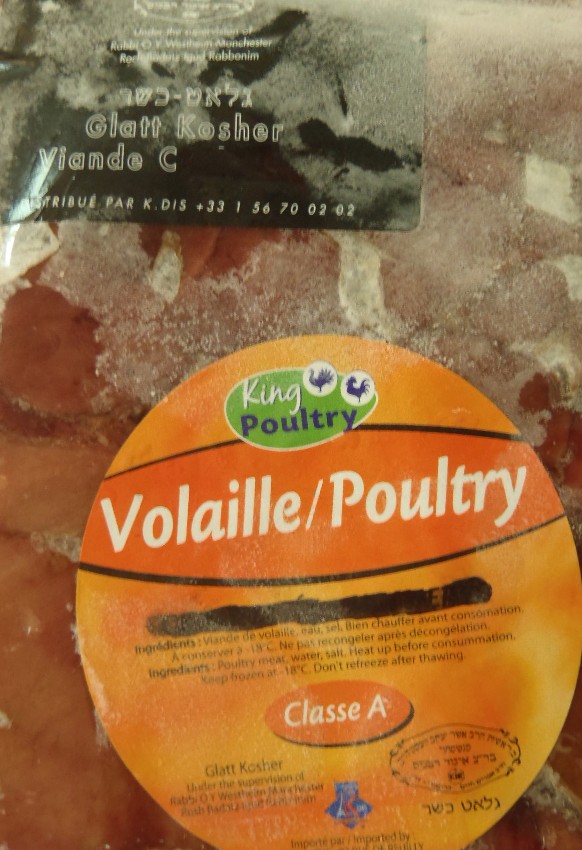 A propos de la viande congelée sous vide portant une étiquette avec un label rabbinique.