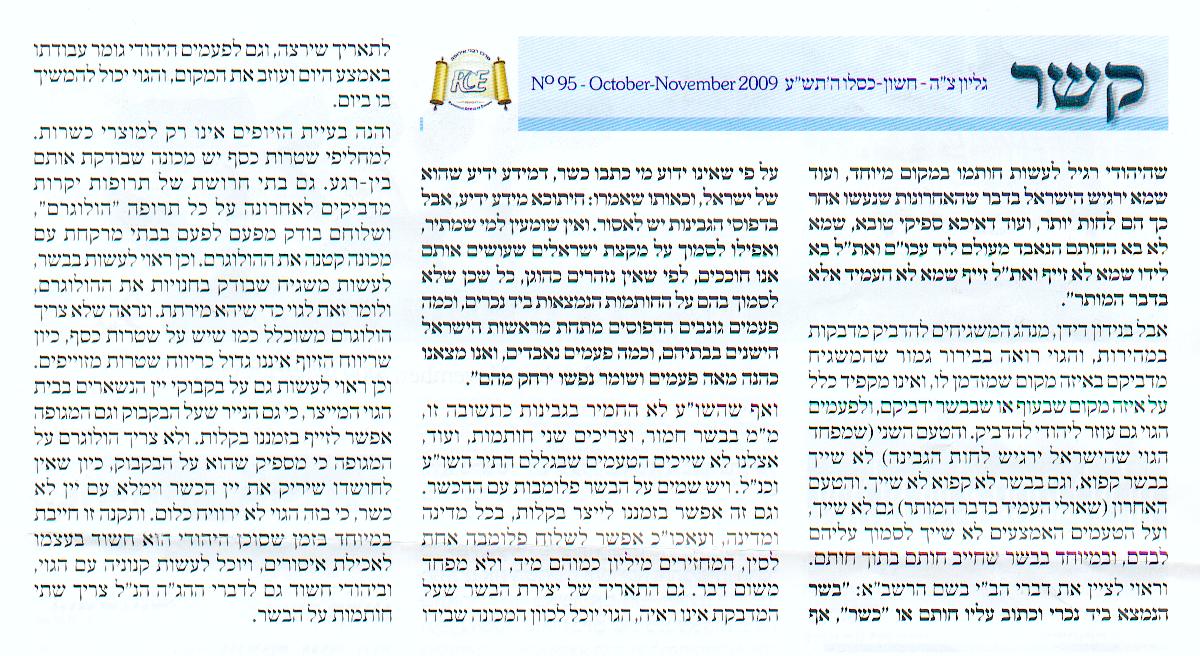Tsomet haguiddim. Koshrus Magazine 147 de Janvier 2010.