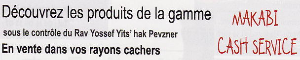 En avril 2008 et les années suivantes nous attirons l'attention sur une chaîne d'hypermarchés mettant en vente à l'approche de Pessa'h des produits Casimex non surveillés pour Pessa'h , et parfois étiquetés de façon douteuse "Cacher le Pessa'h"