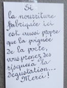 Nous avons encore des problèmes avec l'étiquette. Non tant celle du grand monde que ces petites étiquettes à la limite de la lisibilité, aux mentions absconses. Nous avons donc lancé un grand concours, celui de l'étiquette la plus rassurante concernant la présence ou non de lait dans les biscuits.