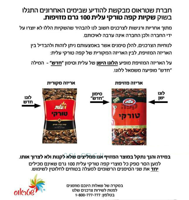 Les soucis de Strauss continuent, avec la découverte sur le marché d'une fausse production de son café noir turc, et la publication du communiqué idoine.