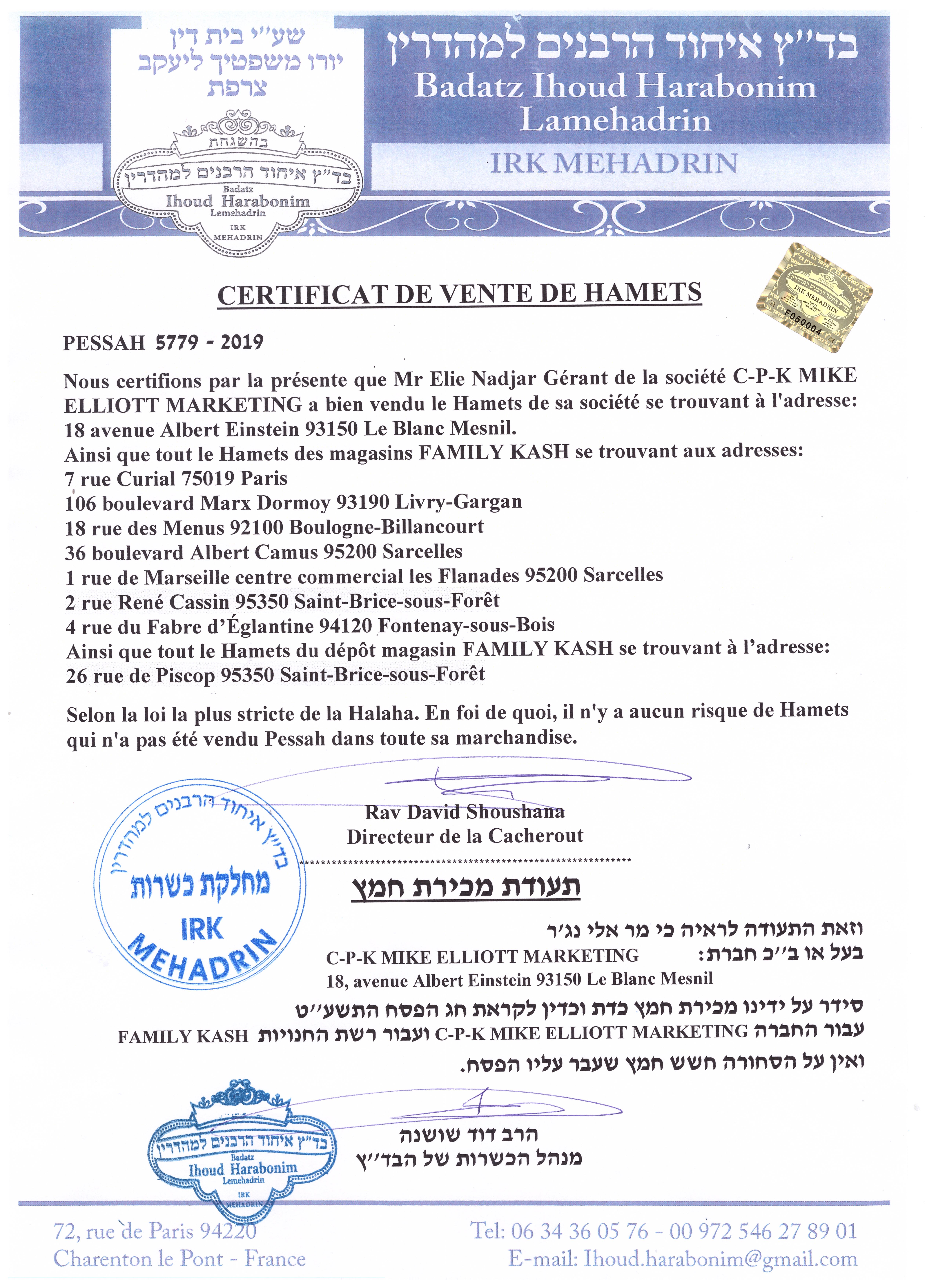 des documents émanant de IRK, Rav Yrmiahou Kohen, Mets et