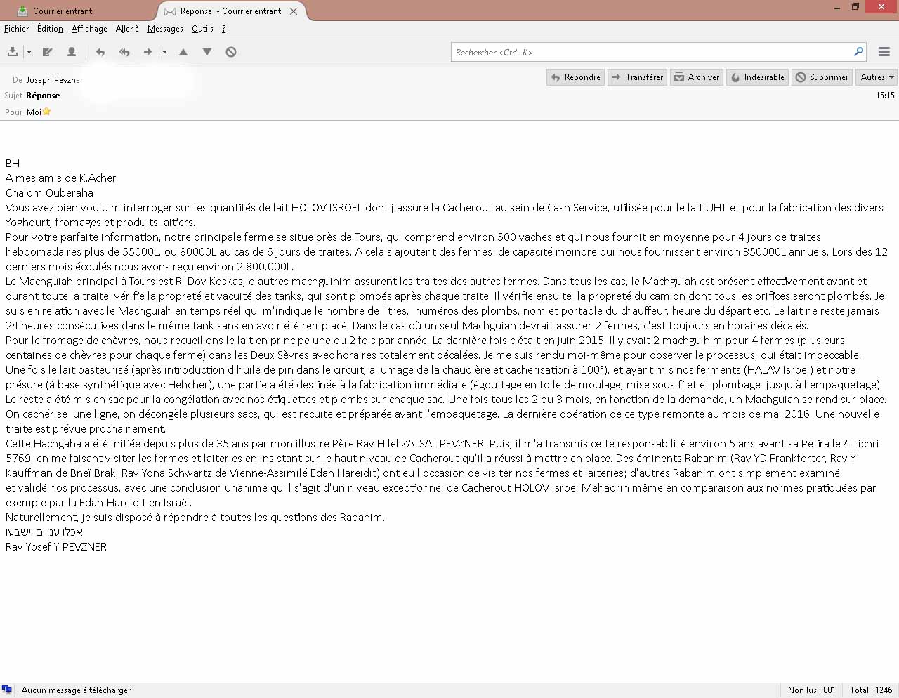 la réputation de ce hekhcher, mais selon nos sources les produits