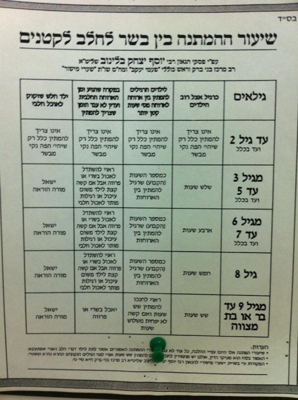 Pour les enfants jusqu'à l'âge de trois ans, il n'y a aucune obligation d'attendre entre la viande et le lait, mais on veillera à ce qu'ils ne le consomment pas simultanément, et n'aient plus de viande en bouche lorsqu'on leur donne du lait.
