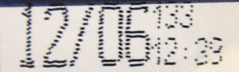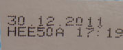 La date de fabrication n'y est pas toujours mentionnée. Lorsqu'elle l'est, cela peut être en clair (jour/mois/année), cela peut être par mention du jour de fabrication décompté à partir du premier jour de l'année, cela peut aussi être masqué dans un numéro de lot (qui ne permet qu'au fabricant –ou à des initiés que nous ne sommes pas- de retrouver la date de fabrication), souvent assorti de l'heure de fabrication. | ![]() |