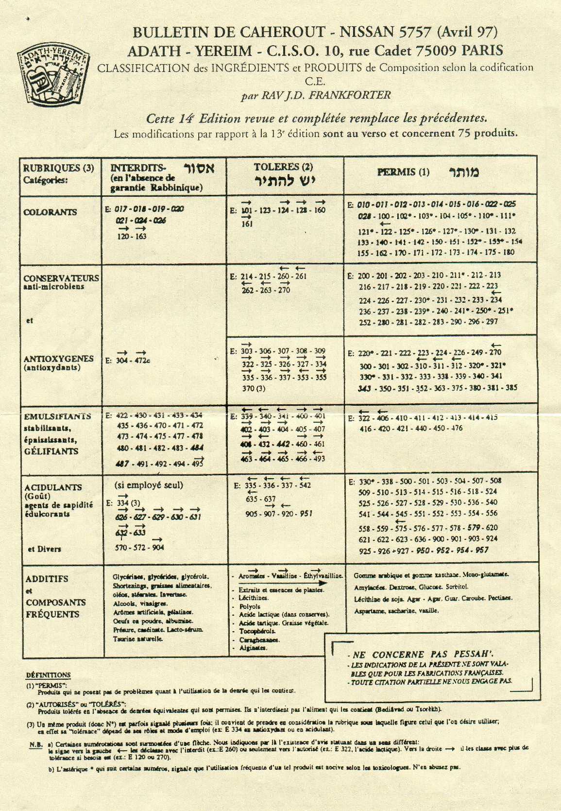 liste classée par numéro de code CE portant sur 75 produits, complétant