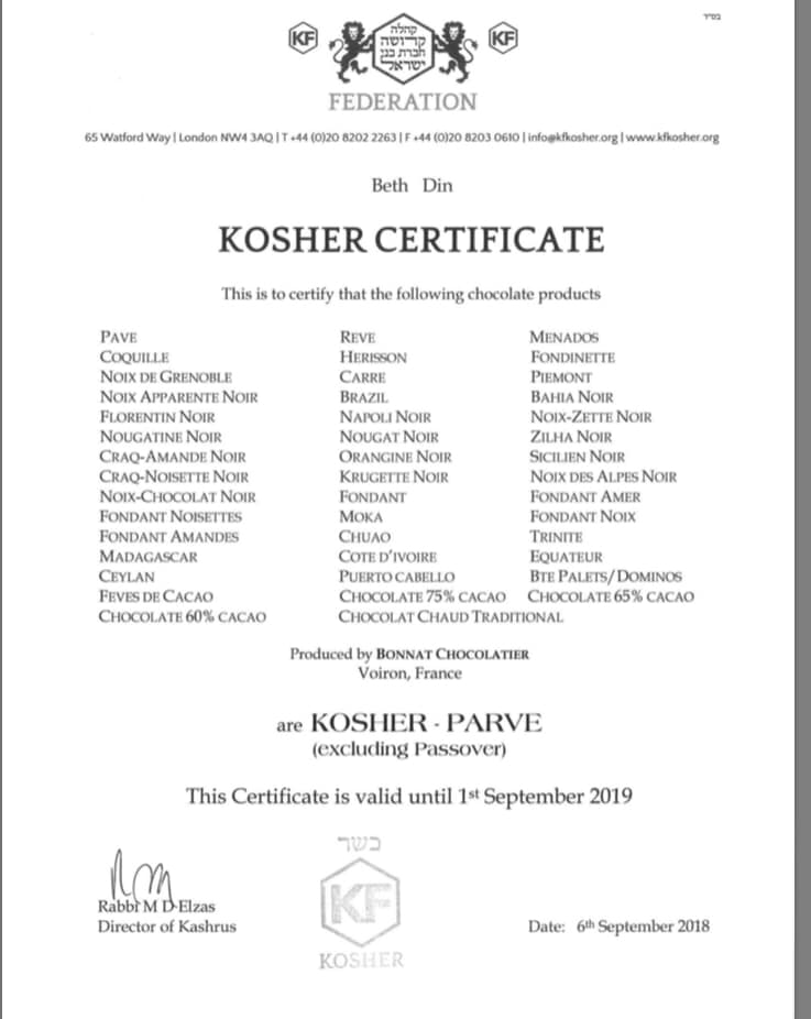 Chocolat Barry Callebaut ---- Chocolats Bonnat 2018 --- Chocolats Valrhona 2018 -- Chocolats Weiss 2022 -23 -parve halavi 1 2 3 -- Jeff de Bruges 1 et 2 --