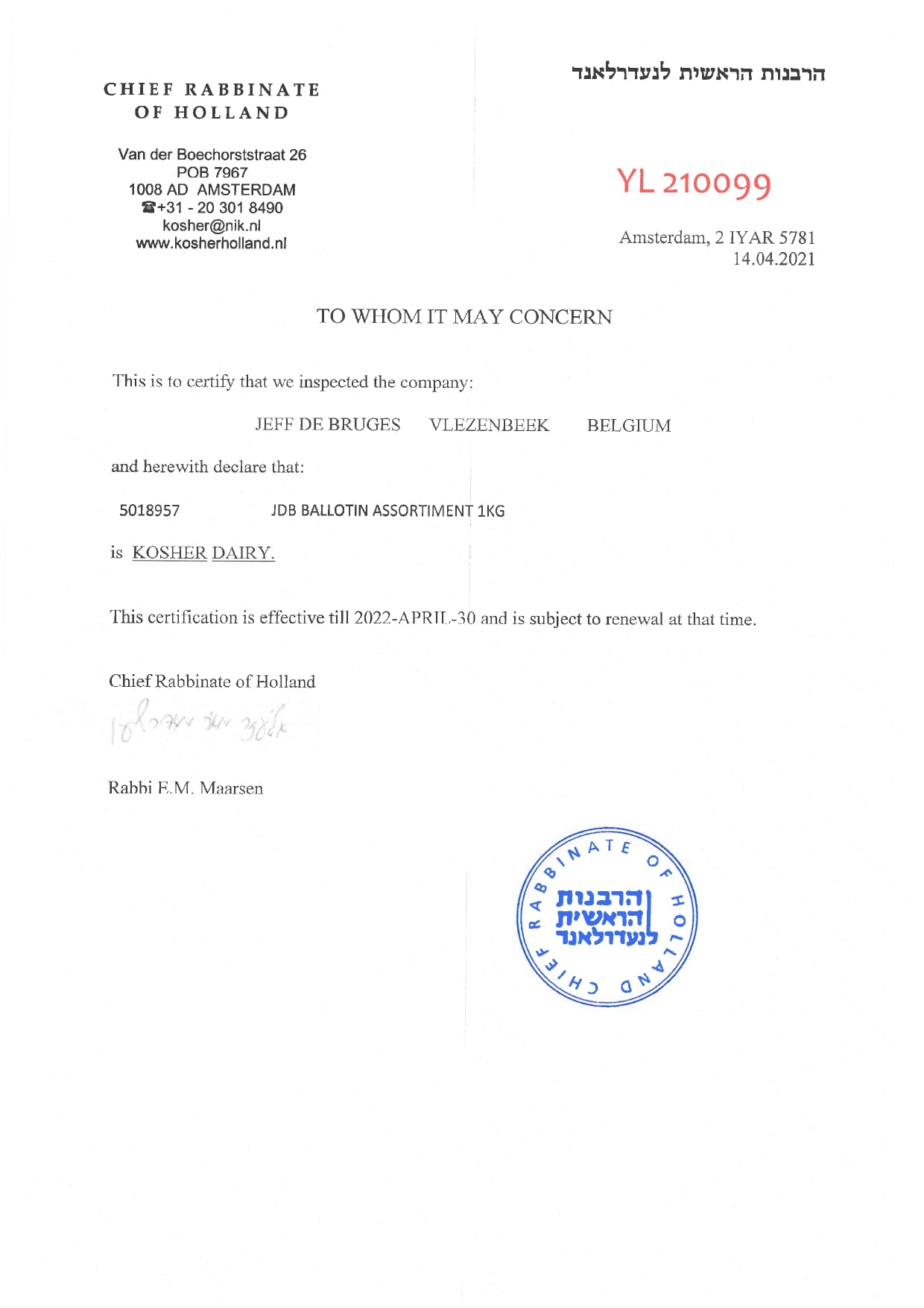 http://www.kosherbelgium.org/ Chomrei Hadat, AnversBulgarie