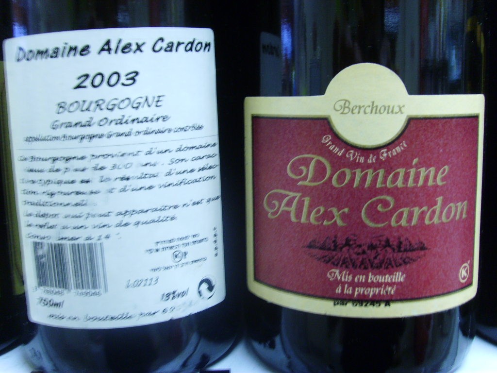 Alex Cardon - Bourgogne Grand Ordinaire 2003" et la chasse continue...