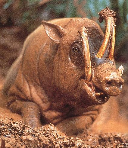 un animal des îles indonésiennes, ressemblant à un porc, rumination en plus.