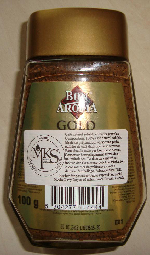 Mr Menahem Bendayan, inventeur du fromage qui devient Cacher le Pessa'h d'un coup d'étiquette magique, a fait fabriquer en mars 2010 un café soluble "Bon Aroma" dans une usine de Pologne.